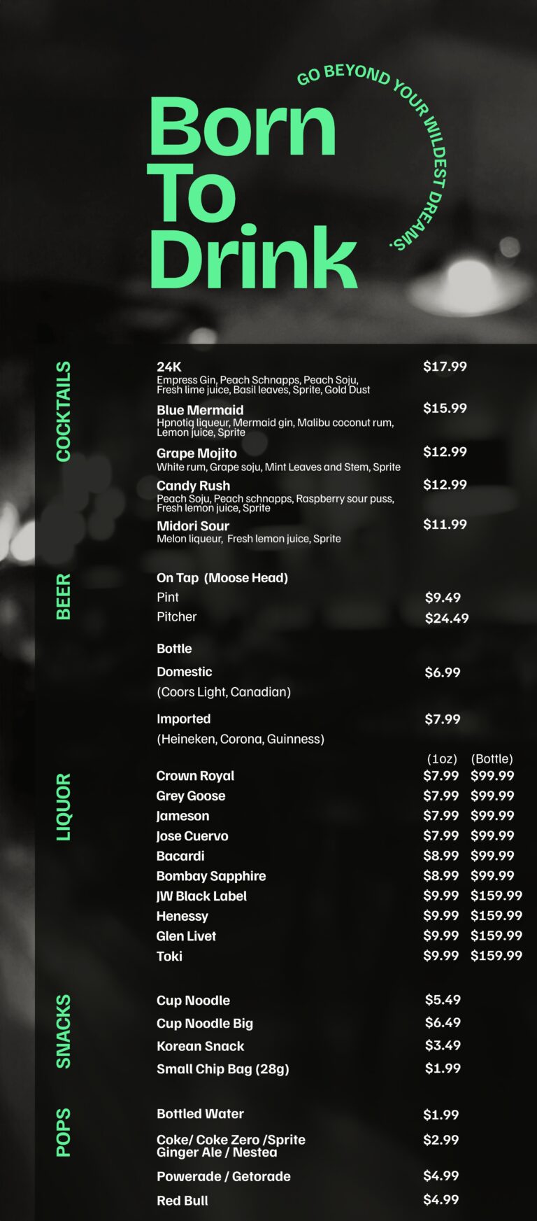 Bar/Snack Menu